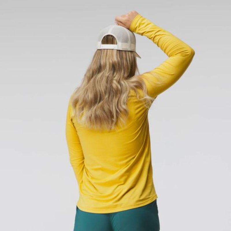 - built from 100% recycled material, the technical fabric enhances the body’s natural cooling process by wicking excess moisture and drying quickly while also providing UPF 50+ sun protection,